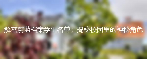 解密蔚蓝档案学生名单:揭秘校园里的神秘角色