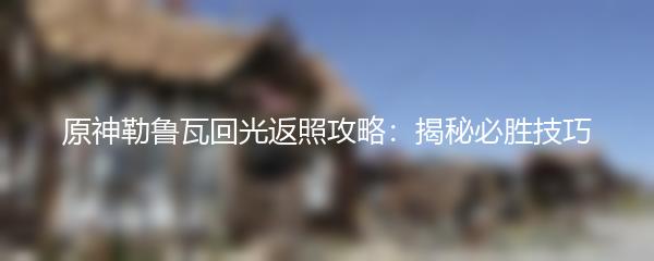 原神勒鲁瓦回光返照,是一场充满挑战性的战斗。在这篇攻略中,我们将向您揭秘必胜的技巧,帮助您取得最终的胜利。