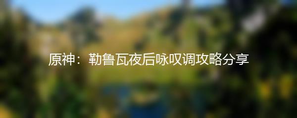 原神:勒鲁瓦夜后咏叹调攻略分享