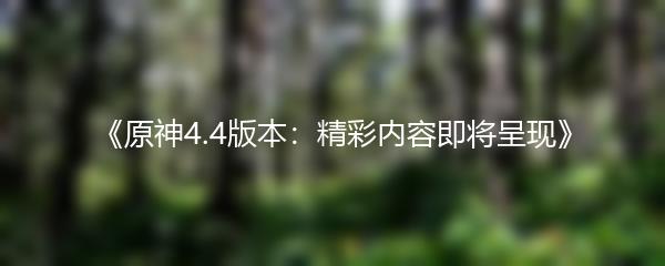 以上就是为大家带来的《原神4.4版本:精彩内容即将呈现》的相关内容简介。这个版本将带来全新的副本挑战、角色加入、地图解锁、活动上线和优化调整等内容。希望玩家们能够通过这个版本的更新,体验到更多乐趣和挑战!