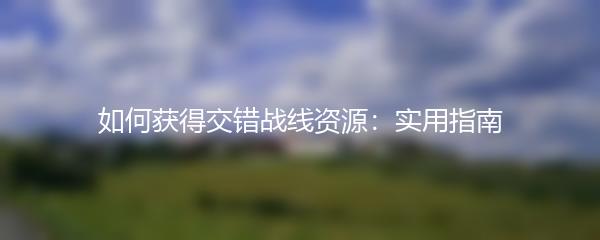在游戏中,交错战线资源是非常重要的,它们可以帮助玩家获得更强大的装备和提升实力。然而,许多玩家对于如何获得这些资源感到困惑。在本文中,我们将为您介绍一些实用的方法,以帮助您更轻松地获得交错战线资源。