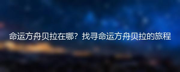 命运方舟贝拉在哪?找寻命运方舟贝拉的旅程