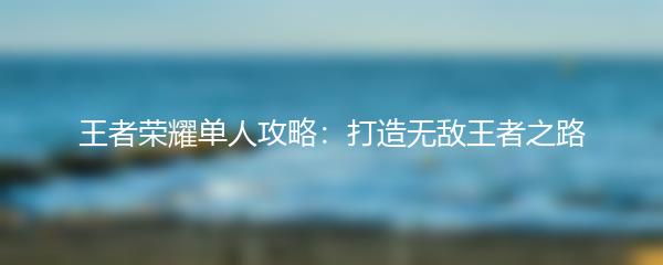 以上就是为大家带来的王者荣耀单人攻略:打造无敌王者之路。通过熟练基础操作、选择合适英雄、巧妙利用地形和草丛、合理利用资源和装备以及保持冷静自信,相信你一定能在单人对战中成为无敌的王者!加油!