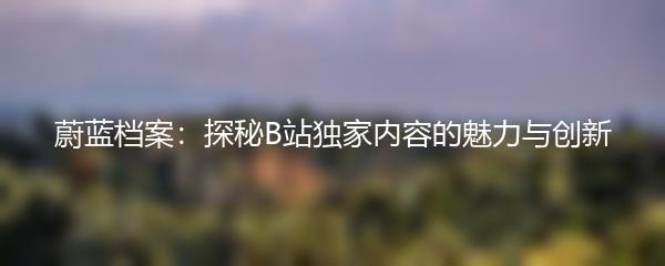 蔚蓝档案:探秘B站独家内容的魅力与创新