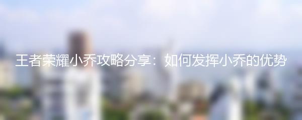 王者荣耀小乔攻略分享:如何发挥小乔的优势