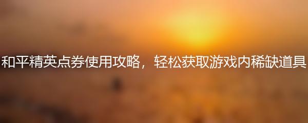 和平精英是一款备受玩家喜爱的战略射击游戏。而在游戏中,点券则是一种重要的游戏虚拟货币,它可以用于购买稀缺道具和装扮角色。本文将为大家介绍如何有效利用和平精英点券,轻松获取游戏内的稀缺道具。