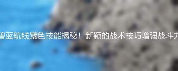 碧蓝航线紫色技能揭秘!新颖的战术技巧增强战斗力