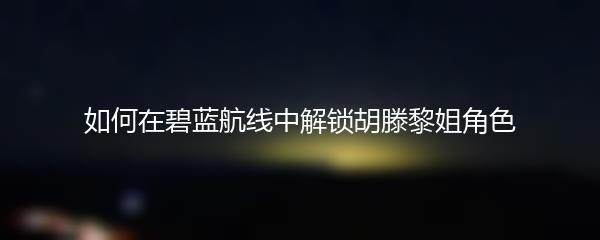 如何在碧蓝航线中解锁胡滕黎姐角色