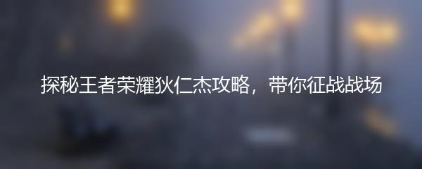 探秘王者荣耀狄仁杰攻略,带你征战战场