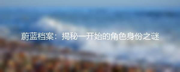 蔚蓝档案是一部引人入胜的电视剧,其中一开始的角色身份引发了观众们的好奇心。今天我们将揭秘这个谜题,让大家了解到更多令人惊讶的信息。