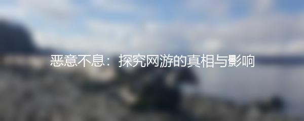 恶意不息:探究网游的真相与影响