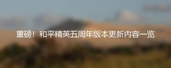 以上就是为大家带来的重磅!和平精英五周年版本更新内容一览。这次更新丰富多彩,为玩家们带来了全新的游戏体验,让我们一起来享受这场刺激的战斗吧!