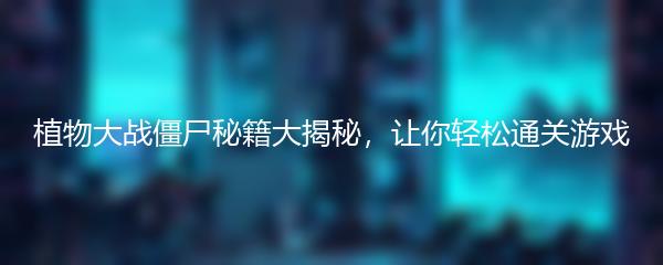玩家们在植物大战僵尸游戏中常常遇到困难,但是掌握了一些秘籍,就可以轻松通关。下面就为大家揭秘一些植物大战僵尸的秘籍,让游戏变得更加轻松有趣。