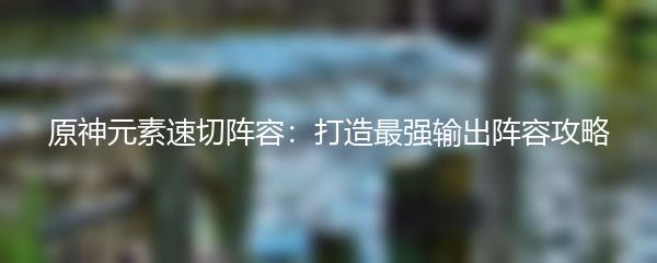 原神元素速切阵容:打造最强输出阵容攻略