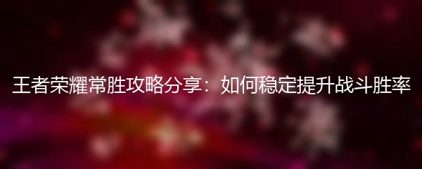 以上就是为大家带来的王者荣耀常胜攻略分享:如何稳定提升战斗胜率。