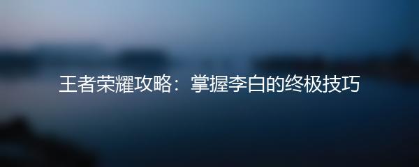 以上就是为大家带来的王者荣耀攻略:掌握李白的终极技巧。