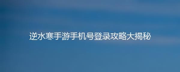 随着手机游戏的不断发展,逆水寒手游成为许多玩家喜爱的选择之一。但是,不少玩家却不知道如何使用手机号登录逆水寒手游,接下来将为大家详细介绍这一登录方式。
