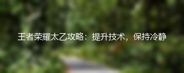 以上就是为大家带来的王者荣耀太乙攻略:提升技术,保持冷静。希望能够帮助到各位玩家在游戏中取得更好的成绩!
