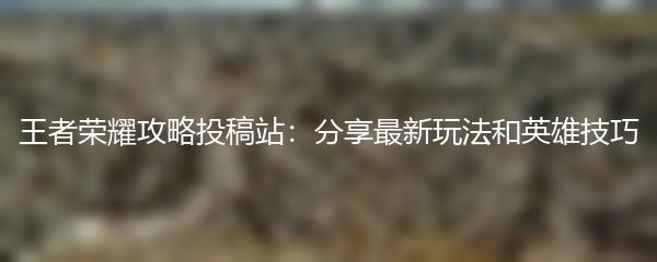 对于热爱王者荣耀的玩家来说,获取最新的游戏攻略和英雄技巧是非常重要的。而王者荣耀攻略投稿站就是一个不错的选择,让玩家们可以互相交流、分享游戏心得,提高游戏水平。