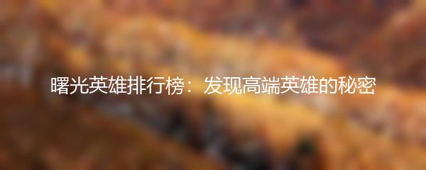 以上就是为大家带来的曙光英雄排行榜:发现高端英雄的秘密,想要成为高端英雄,不仅需要技术过硬,更需要耐心和毅力。只有不断努力,才能在竞技场上创造传奇!