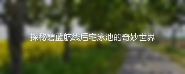 在众多游戏玩家中,碧蓝航线无疑是一款备受喜爱的手机游戏。而在游戏中的后宅泳池,更是让人津津乐道。这个拥有神秘魅力的泳池,到底有着怎样的奇妙世界呢?