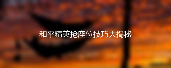 和平精英抢座位技巧大揭秘