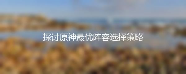 探讨原神最优阵容选择策略