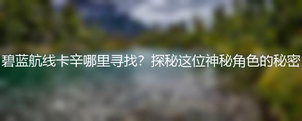 碧蓝航线卡辛哪里寻找?探秘这位神秘角色的秘密