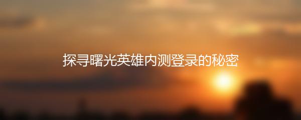 探寻曙光英雄内测登录的秘密