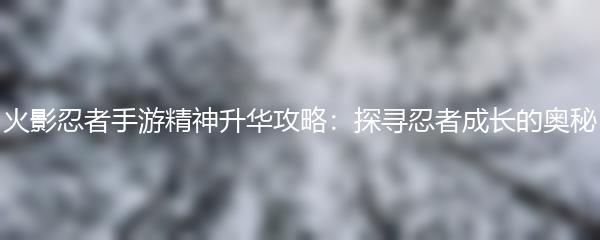 火影忍者手游精神升华攻略:探寻忍者成长的奥秘