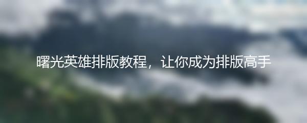 以上就是为大家带来的曙光英雄排版教程,让你成为排版高手。通过学习此教程,相信你将能够在设计领域中脱颖而出,创作出更加优秀的作品。
