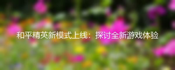 以上就是为大家带来的《和平精英新模式上线:探讨全新游戏体验》的内容。