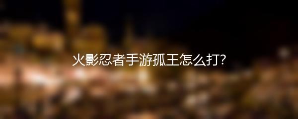 以上就是为大家带来的“火影忍者手游孤王怎么打?”。希望这些策略对你在游戏中的战斗有所帮助,祝你取得好成绩!