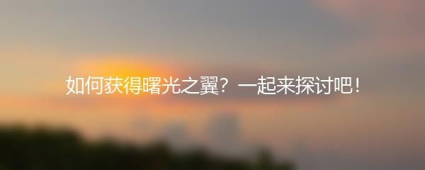 如何获得曙光之翼?一起来探讨吧!