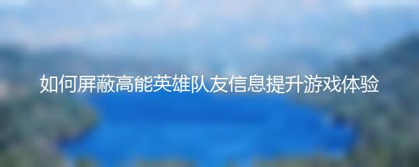 以上就是为大家带来的如何屏蔽高能英雄队友信息提升游戏体验。
