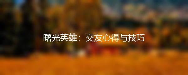 在现代社会,交友已经变得越来越重要。曙光英雄,作为一名英雄角色,也需要学会如何与他人建立良好的关系。以下是一些关于如何交友的心得与技巧。