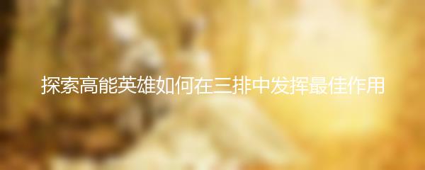 以上就是为大家带来的探索高能英雄如何在三排中发挥最佳作用。
