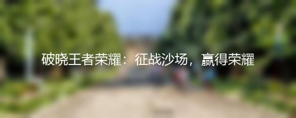 以上就是为大家带来的破晓王者荣耀:征战沙场,赢得荣耀。