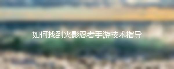 如何找到火影忍者手游技术指导