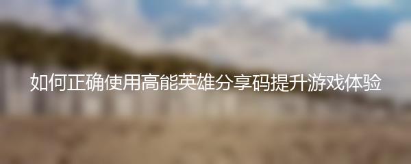 以上就是为大家带来的如何正确使用高能英雄分享码提升游戏体验。希望通过本文的介绍,你能更好地利用分享码,享受游戏乐趣。