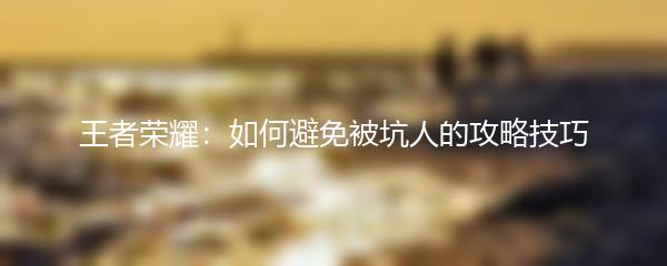 王者荣耀:如何避免被坑人的攻略技巧