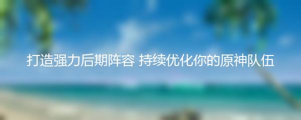 以上就是为大家带来的“打造强力后期阵容 持续优化你的原神队伍”的内容。通过不断地实践和调整,相信你一定可以打造出一个强大的原神后期阵容,享受游戏带来的乐趣。
