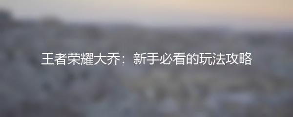 以上就是为大家带来的王者荣耀大乔:新手必看的玩法攻略。