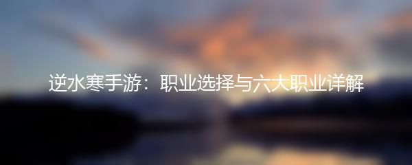 以上就是为大家带来的逆水寒手游:职业选择与六大职业详解,希望对大家在游戏中选择职业和提升游戏技巧有所帮助。