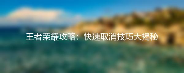 王者荣耀攻略:快速取消技巧大揭秘