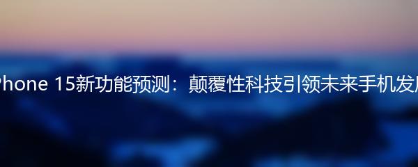 iPhone 15新功能预测:颠覆性科技引领未来手机发展