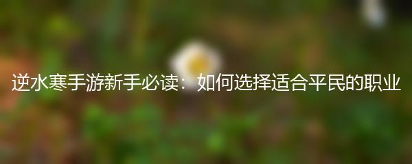 逆水寒手游,作为一款备受瞩目的网游,吸引了大批玩家的加入。在选择适合自己的职业方面,平民玩家尤为关注。如何在逆水寒世界里选择一个适合平民玩家的职业呢?接下来将为您一一解答。