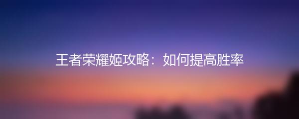 以上就是为大家带来的王者荣耀姬攻略:如何提高胜率。希望大家能够通过学习和实践,成为一名真正的王者!