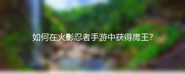在火影忍者手游中,玩家们都希望能拥有强大的忍者,其中鹰王是很多玩家梦寐以求的存在。那么,如何才能在游戏中获得这个神秘又强大的角色呢?