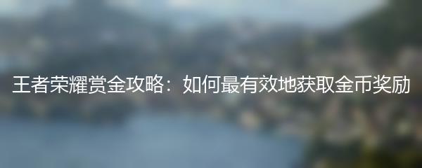 王者荣耀赏金攻略:如何最有效地获取金币奖励
